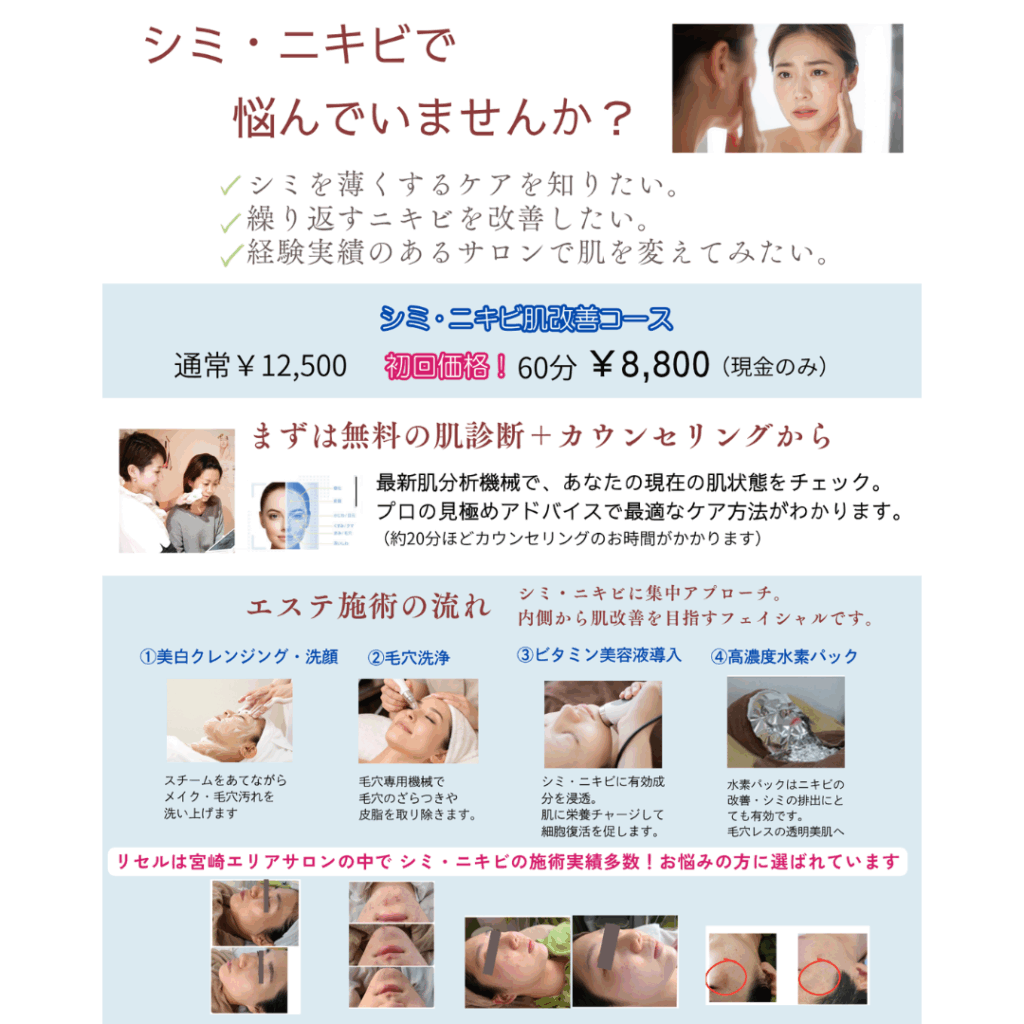 宮崎市でシミ・ニキビ改善ならリ・セル【肌改善エステ今なら初回8800円】