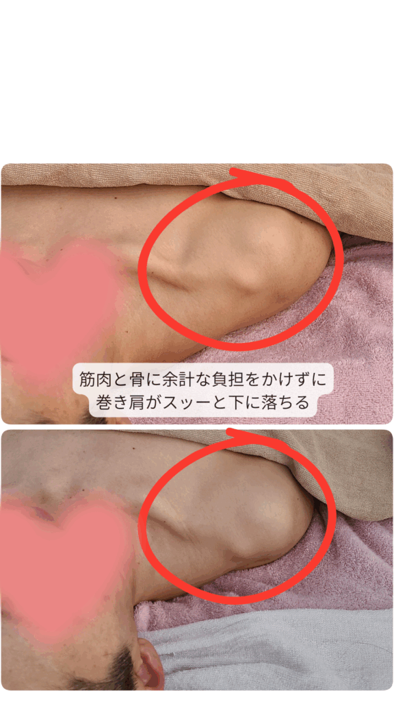 ✔巻き肩が元の位置に戻った
